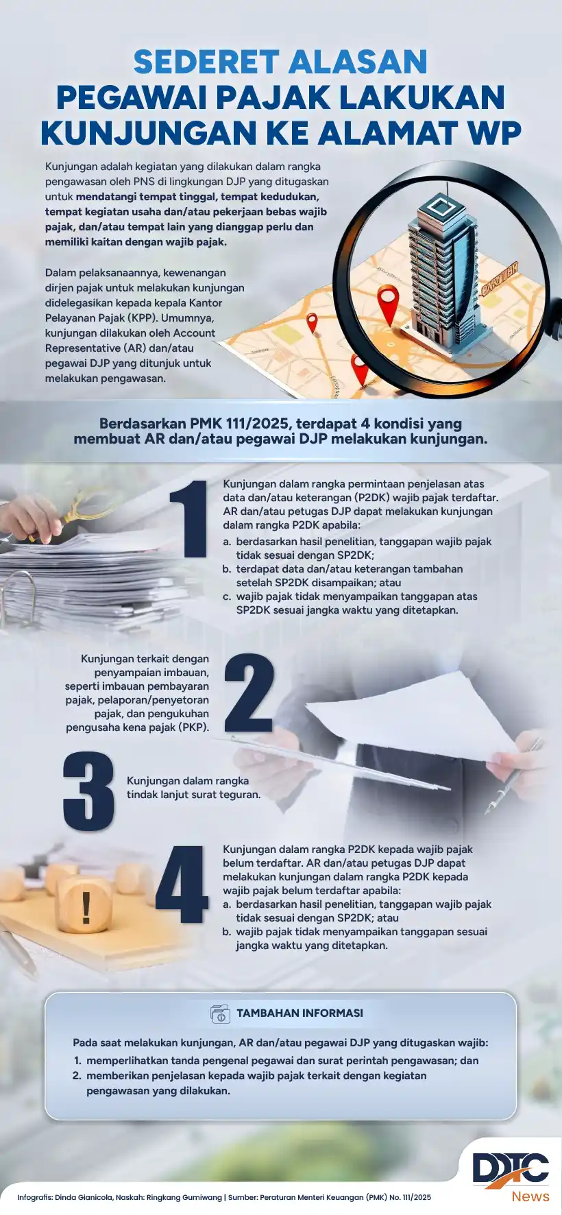 “Selain mengumpulkan informasi proses bisnis wajib pajak, petugas juga memberikan edukasi seputar perpajakan kepada wajib pajak,” katanya seperti dikutip dari laman resmi Ditjen Pajak (DJP), Kamis (25/8/2022).