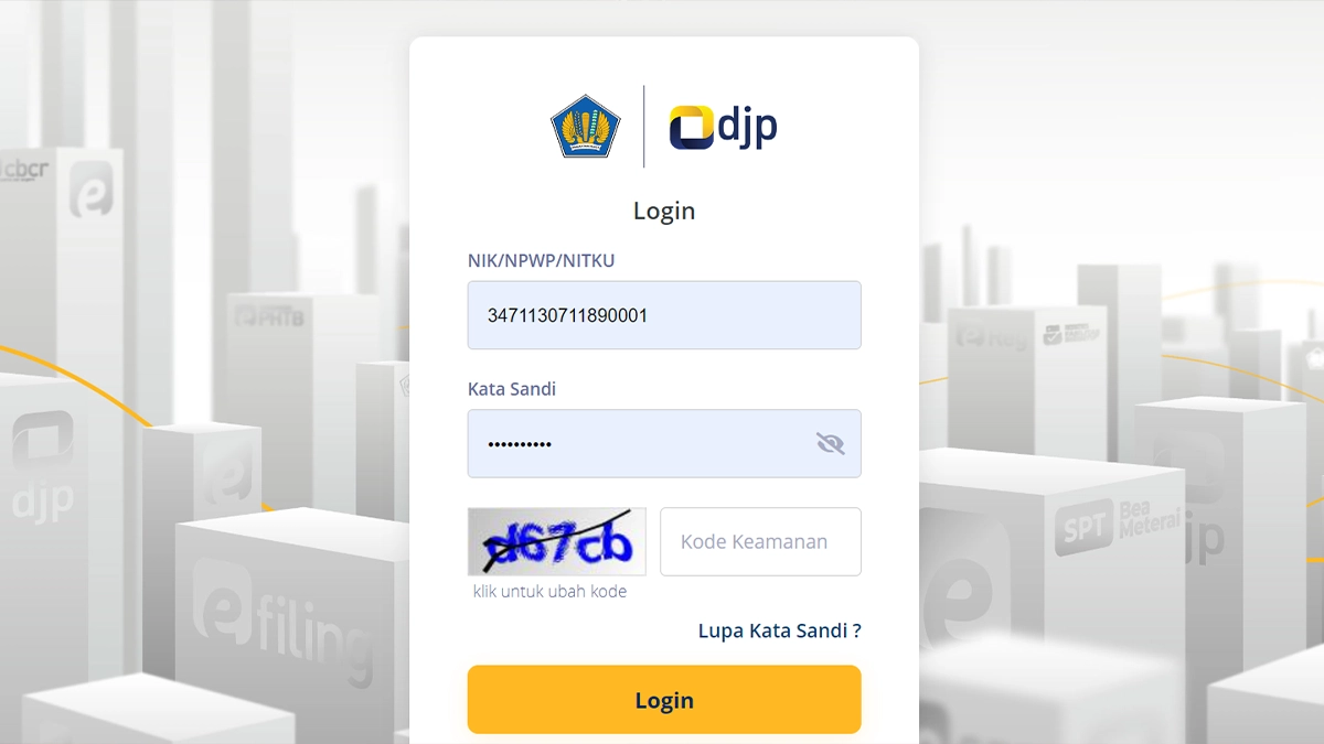 Ditjen Pajak (DJP) menyampaikan bahwa kendala tersebut muncul karena adanya kesalahan dalam penginputan NPWP atau password. Solusinya, coba lakukan refresh laman DJP Online dan pastikan pengisian kata sandi atau password sudah benar.