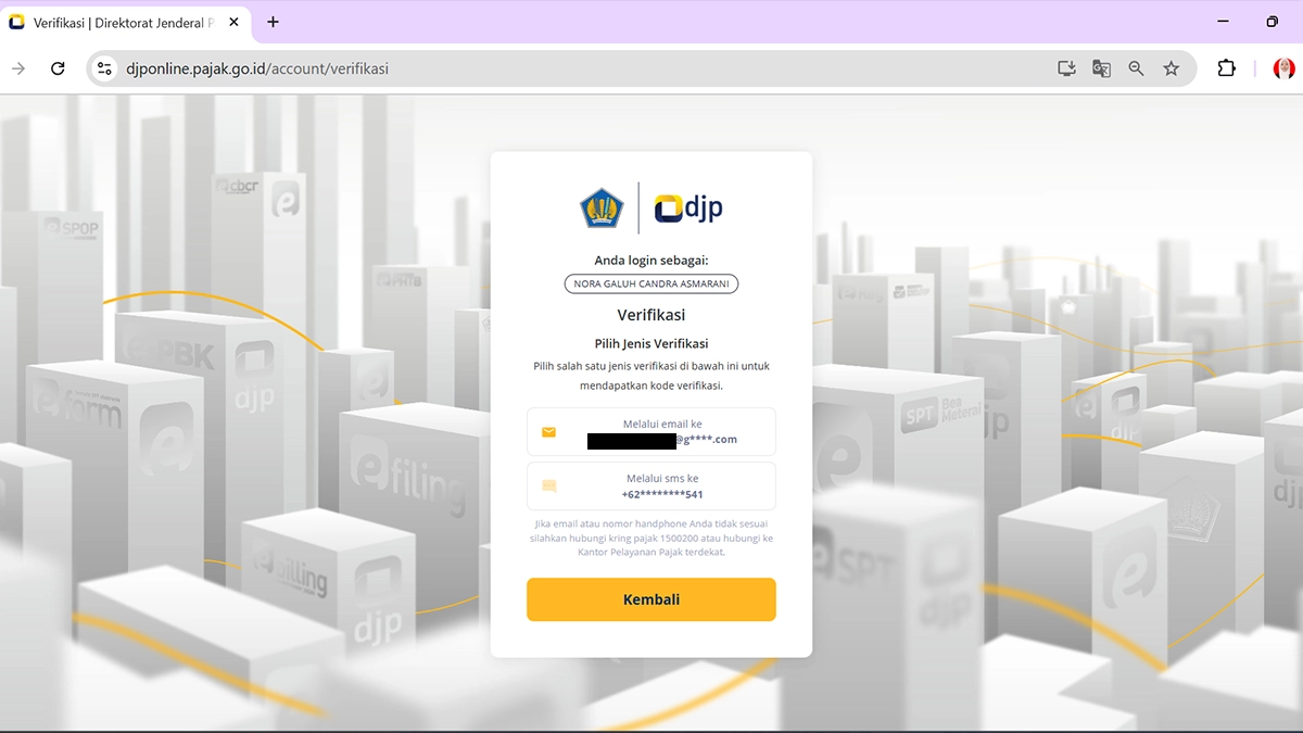 Sesuai dengan instruksi pada ND-1576/PJ.12/2024, wajib pajak akan diminta memilih 2 opsi untuk pengiriman token. Setelah memilih salah satu dari 2 opsi yang tersedia, DJP akan langsung mengirimkan kode verifikasi untuk login DJP Online.