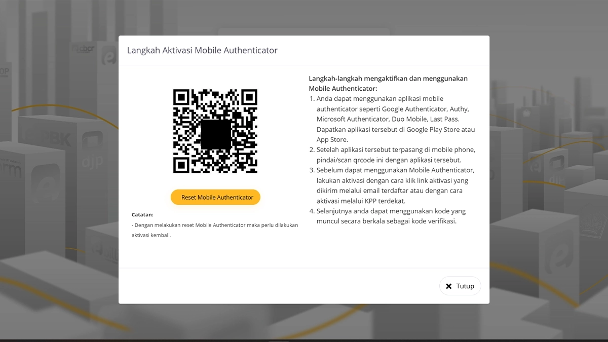 Wajib pajak dapat memilih salah satu dari pilihan aplikasi tersebut dan mendownloadnya melalui App Store atau Play Store. Setelah berhasil menginstal mobile authenticator, ada 4 langkah yang perlu dilakukan mengaktifkan dan menggunakan mobile authenticator sebagai saluran MFA.