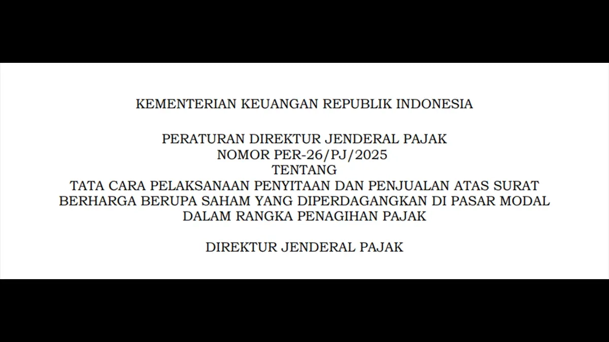 JAKARTA, DDTCNews – Melalui Peraturan Dirjen Pajak No. PER-26/PJ/2025, Dirjen Pajak Bimo Wijayanto mengatur tata cara penyitaan dan penjualan atas surat berharga berupa saham yang diperdagangkan di pasar modal dalam rangka penagihan pajak.