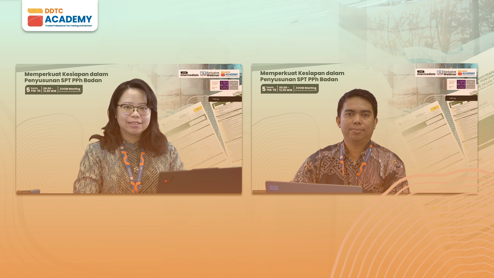DDTC Academy telah menggelar exclusive webinar bertajuk Memperkuat Kesiapan dalam Penyusunan SPT PPh Badan. Disiarkan langsung dari studio lantai 1 Menara DDTC, acara berlangsung pukul 09.00-12.00 WIB pada hari ini, Kamis (5/2/2026).