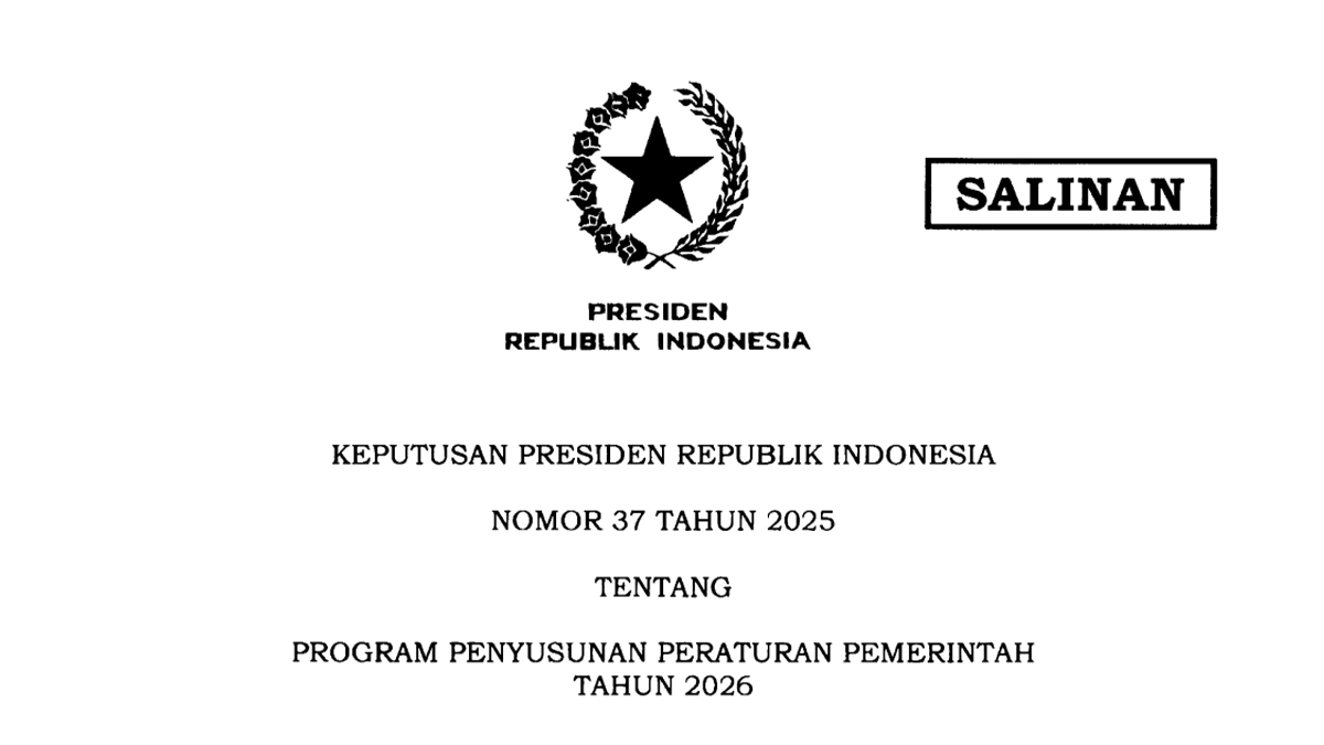 "Program penyusunan PP ... ditetapkan untuk jangka waktu 1 tahun," bunyi diktum kedua Keppres 37/2025, dikutip pada Sabtu (7/2/2026).