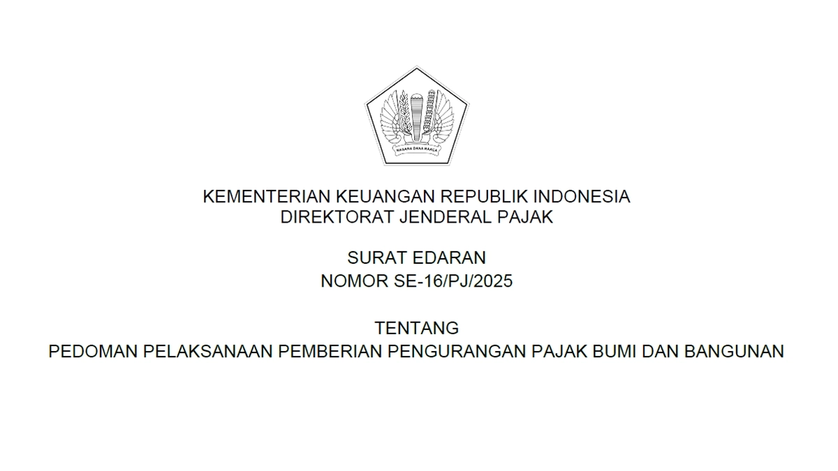 JAKARTA, DDTCNews -- Dirjen Pajak Bimo Wijayanto menetapkan surat edaran baru yang menjadi pedoman pemberian pengurangan pajak bumi dan bangunan (PBB-P5L). Surat edaran yang dimaksud adalah SE-16/PJ/2025.