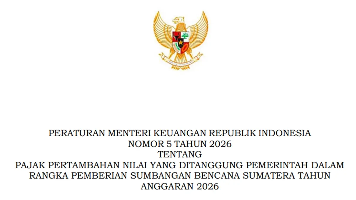 “Bahwa untuk pemberian sumbangan oleh pihak tertentu..., perlu diberikan insentif fiskal berupa pajak pertambahan nilai yang ditanggung pemerintah tahun anggaran 2026,” bunyi pertimbangan PMK 5/2026. (dik)