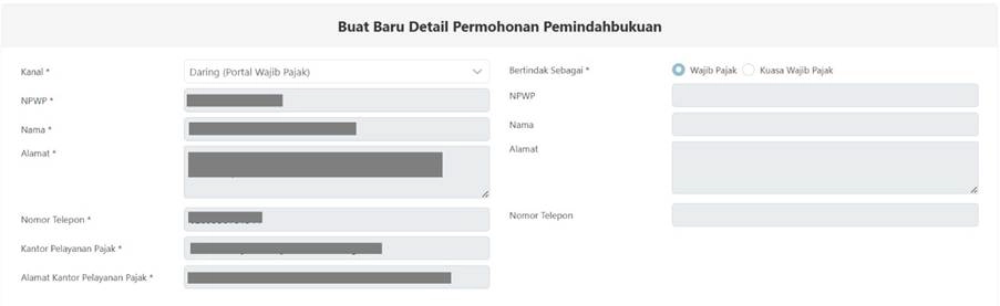 Pada halaman muka Coretax DJP, pilih modul Pembayaran dan menu Permohonan Pemindahbukuan. Setelah masuk ke dashboard pemindahbukuan, tekan tombol Buat Permohonan Pemindahbukuan Baru sehingga muncul tampilan berikut.