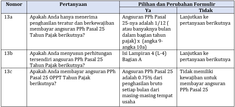 Angka 13 Huruf c - Apakah Anda Membayar Angsuran PPh Pasal 25 OPPT Tahun Pajak Berikutnya?