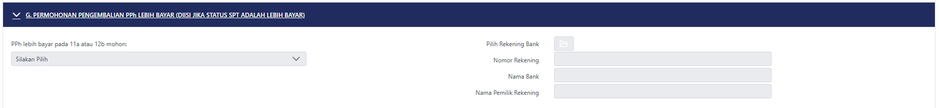 Bagian ini hanya diisi apabila terdapat jumlah PPh yang lebih bayar di angka 11 Huruf a Formulir Induk (dalam hal status SPT Tahunan PPh normal) atau angka 12 Huruf b Formulir Induk (dalam hal status SPT Tahunan PPh pembetulan).